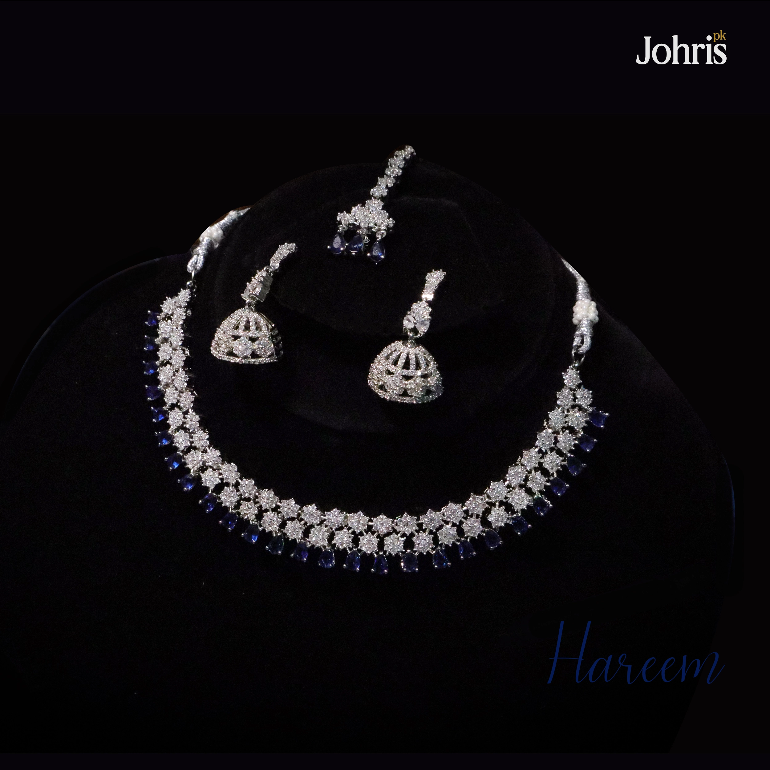 • Cubic Zirconia Set • Brass with Premium Rhodium Silver Plated Finish • Sapphire/ Blue Color