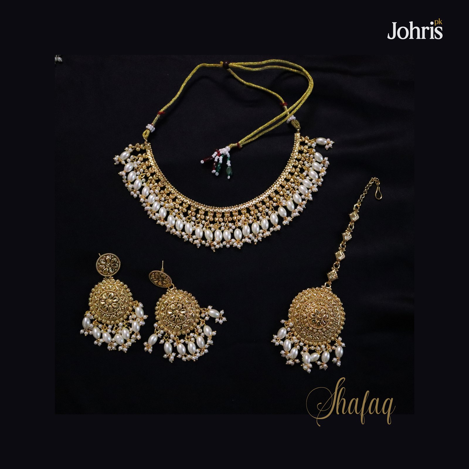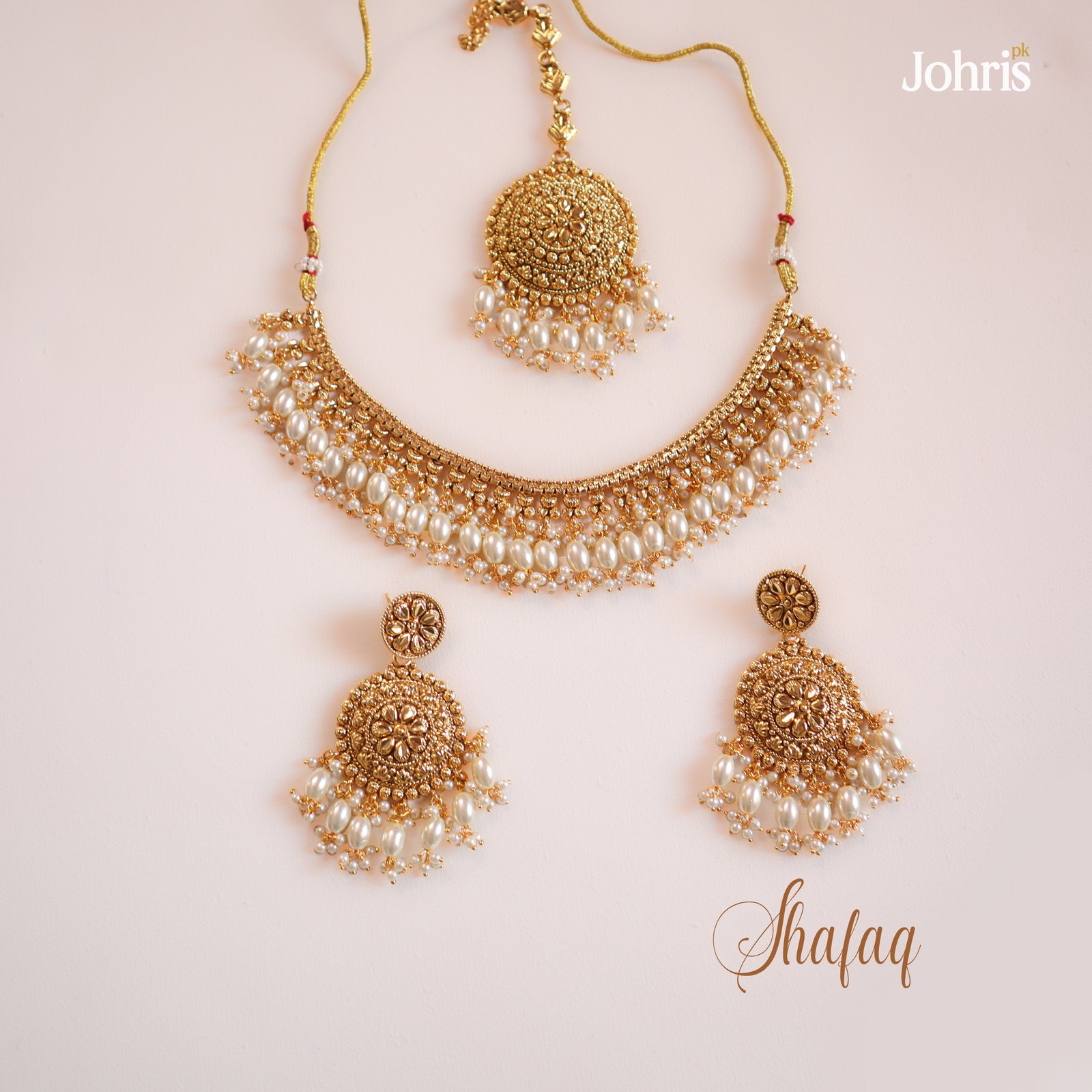 • Gold Style Necklace Set • Copper with Gold Plated Finish • White pearls detailing
